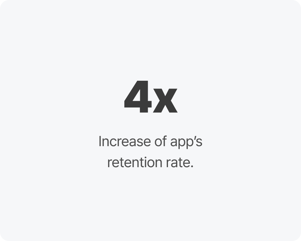 The final product resulted in a $2.5 million investment in Series A funding, quadrupled the app's retention rate, and successfully launched the MVP of the native app design with a 4x increase of the app’s retention rate, earning a perfect 10 rating.