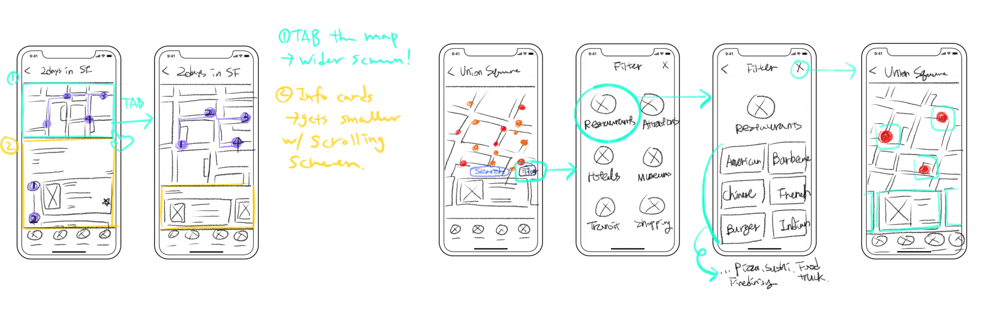 While the card feature on the map is highly noticeable, we ensured it is intuitive for users to access quickly and easy to read. Below are some iterantions I went through to enhance interaction design.