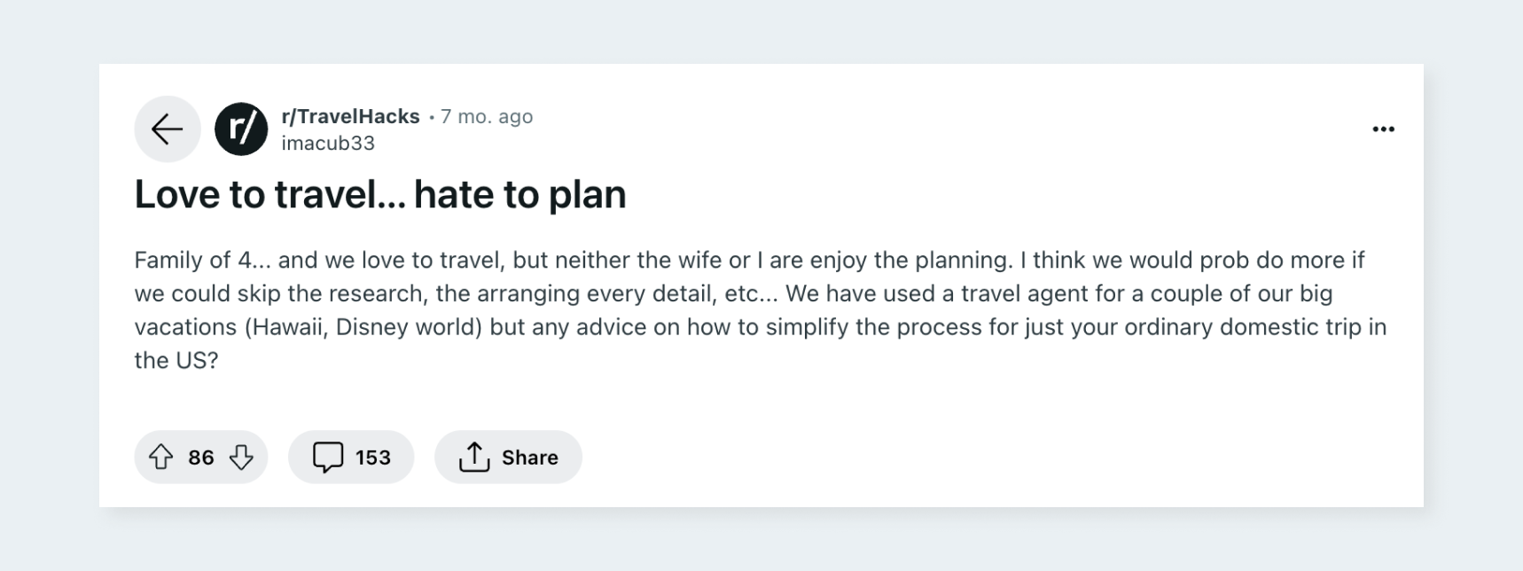 How can we make it easy for users to plan their travels and spend minimal time on their itineraries?