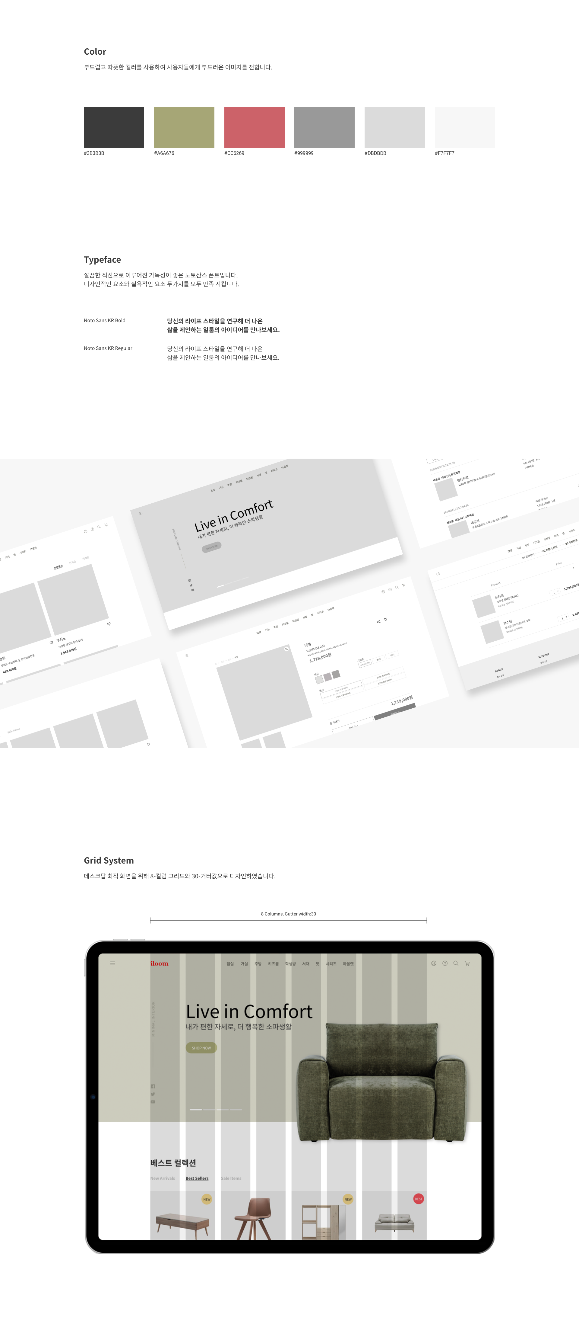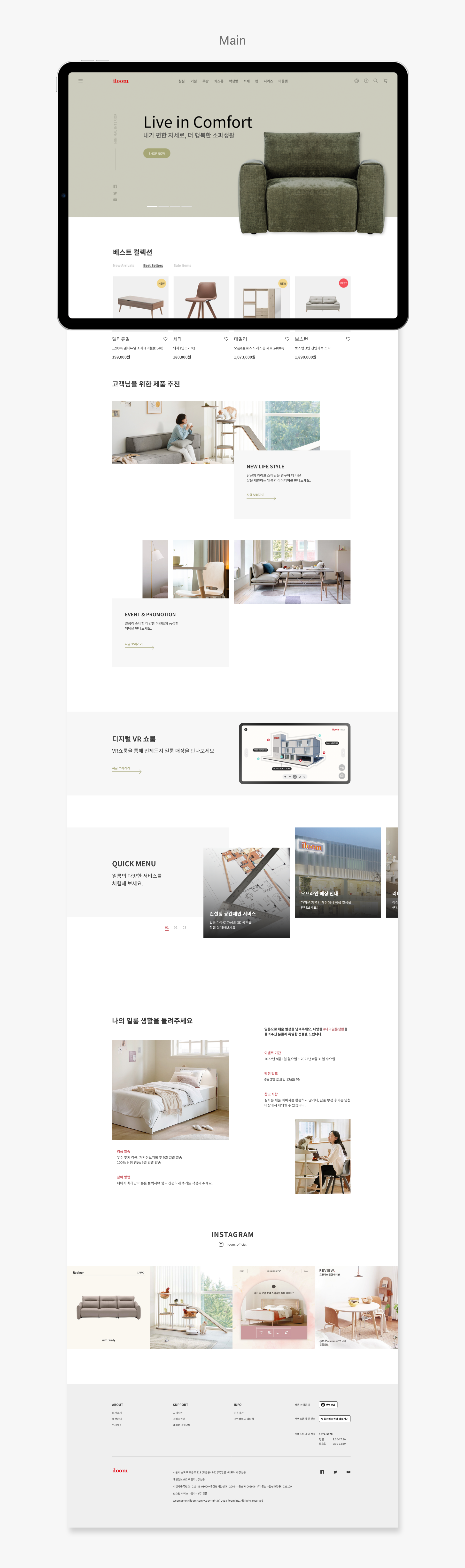 Throughout my participation in the UX/UI Bootcamp in Korea, I undertook the task of redesigning the Korean interior design website 'Iloom' to ensure consistency in tone, manner, and branding.