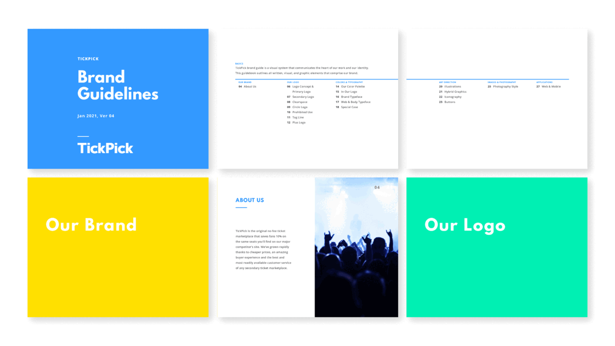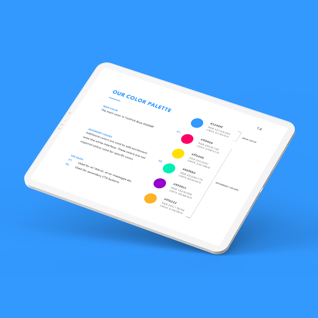 Creating a strong first impression is vital for a brand, and visuals play a big role in that. That's why I made a Brand Style Guide for TickPick. It covers our logo, colors, fonts, and how to use them across different situations. This guide ensures everyone on our team, from designers to developers, can confidently represent our brand consistently, keeping TickPick's identity strong and cohesive.