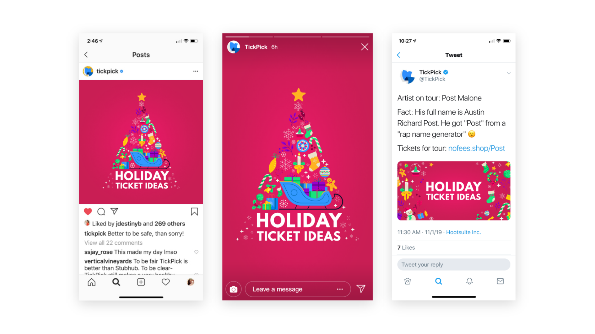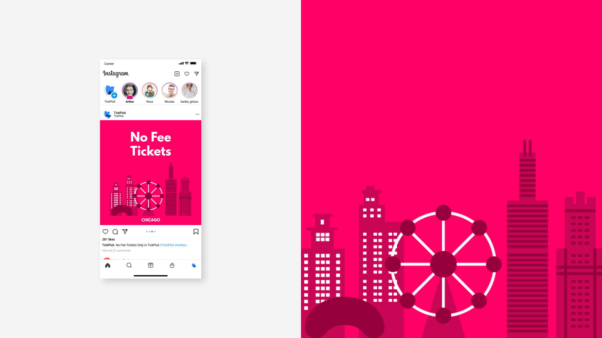 That's when we came up with the idea of making Instagram stickers. Customers could use these stickers when they took pictures or videos at concerts. They added our logo to fun animated stickers using the #tickpick hashtag and had a chance to win prizes. This made it more exciting for people to show they were using our service. Exactly as we intended. It had a significant impact on our branding efforts.
